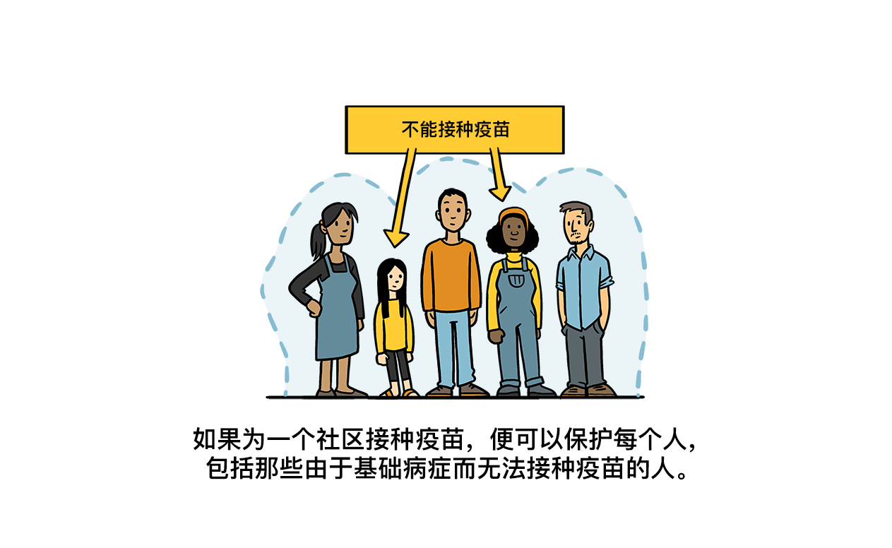 接种疫苗不仅可以保护自己,还可以保护社区中那些无法接种疫苗的人。如果你能接种,请接种疫苗。